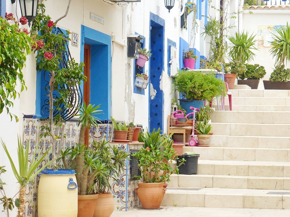 Fototoestel in de aanslag! De mooiste wijk van Alicante vind ik Barrio de Santa Cruz, ook wel El Barrio. Je moet er wat trappen voor op en af, maar wát een fotogenieke smalle straatjes. Witte trappen, sierlijke balkonnetjes, kleurrijke waslijnen, gevulde bloempotten en versierde deurposten. Onder meer Calle San Rafael en Calle San Antonio zijn hier populaire straten.